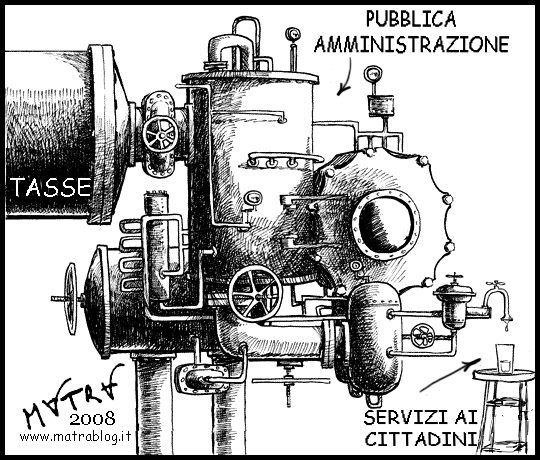 In opposizione, una delle visioni più coerenti del problema Italia è che il Paese ha nutrito ed allevato un cancro nel proprio corpo che si chiama Stato, inteso come i milioni di dipendenti pubblici e i vari privilegi riccamente distribuiti, ed è questo cancro che si sta mangiando il resto del Paese. È un cancro al cervello, quindi non è possibile risolvere il problema, perché è il problema che prende le decisioni. Paradossalmente, questo cancro è anche il bacino elettorale del partito più europeista di tutti e l'Europa vorrebbe estirparlo.